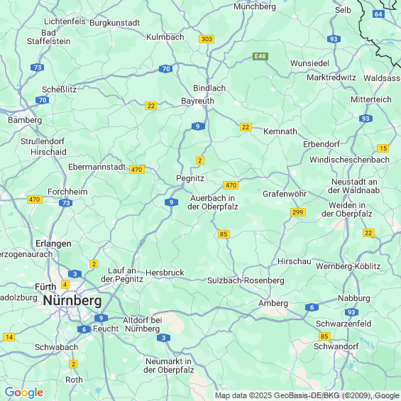 Städte in der Nähe von Auerbach in der Oberpfalz
