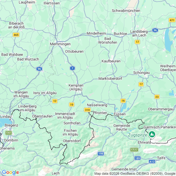 Städte in der Nähe von Bad Hindelang