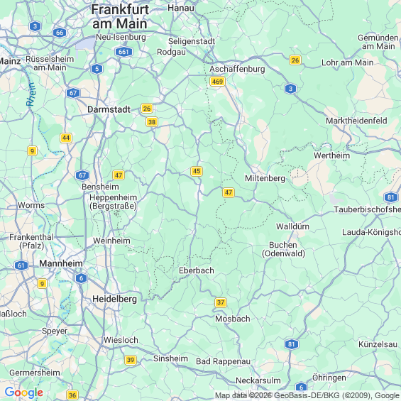 Städte in der Nähe von Erbach Odenwaldkreis