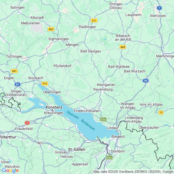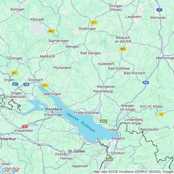 Städte in der Nähe von Friedrichshafen