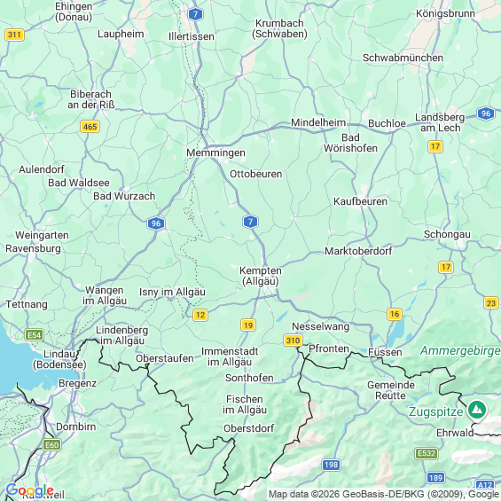 Städte in der Nähe von Kempten (Allgäu)
