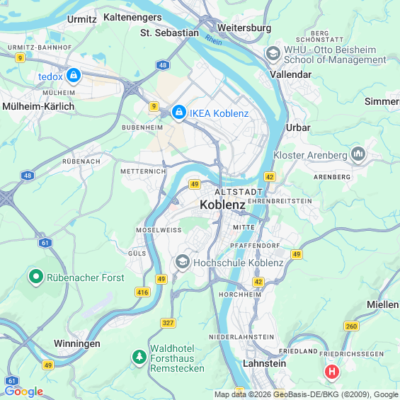 Städte in der Nähe von Koblenz