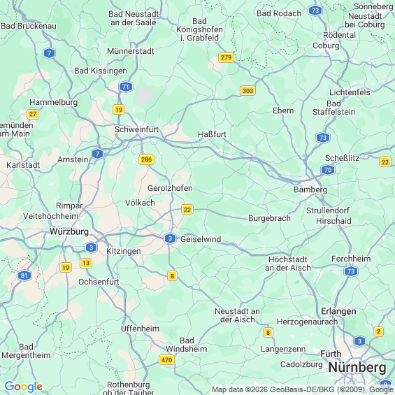 Städte in der Nähe von Oberschwarzach
