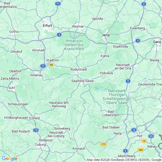 Städte in der Nähe von Saalfeld/Saale