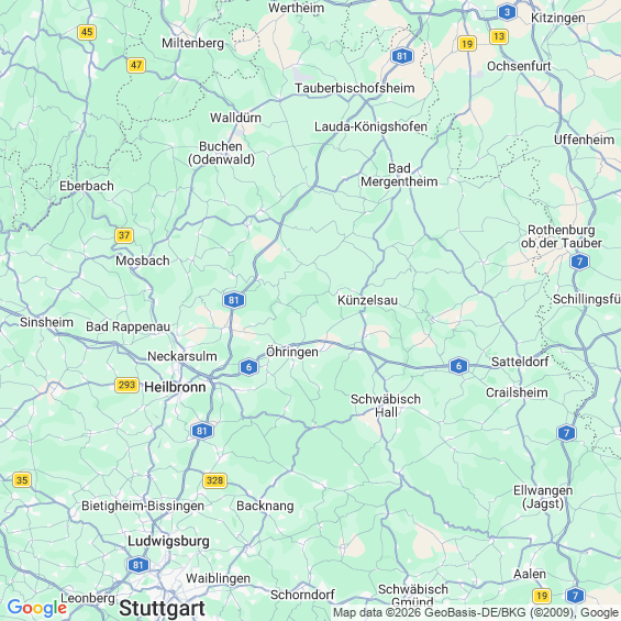 Städte in der Nähe von Weißbach Hohenlohekreis